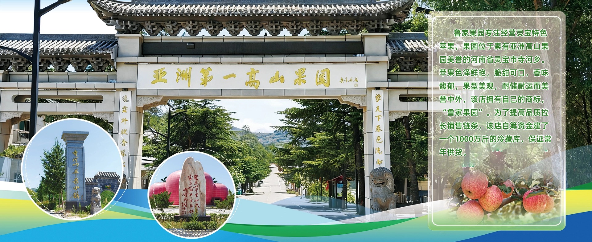 灵宝市鲁家果园专卖店,开业于2006年,主要经营灵宝市寺河山苹果。该店在寺河山上成立了灵宝市山之本高山苹果专业合作社。拥有社员200多户,果园2000多亩。年产苹果1000余万斤。为了提高品质拉长销售链条,该店自筹资金建了一个1000万斤的冷藏库,保证常年供货。